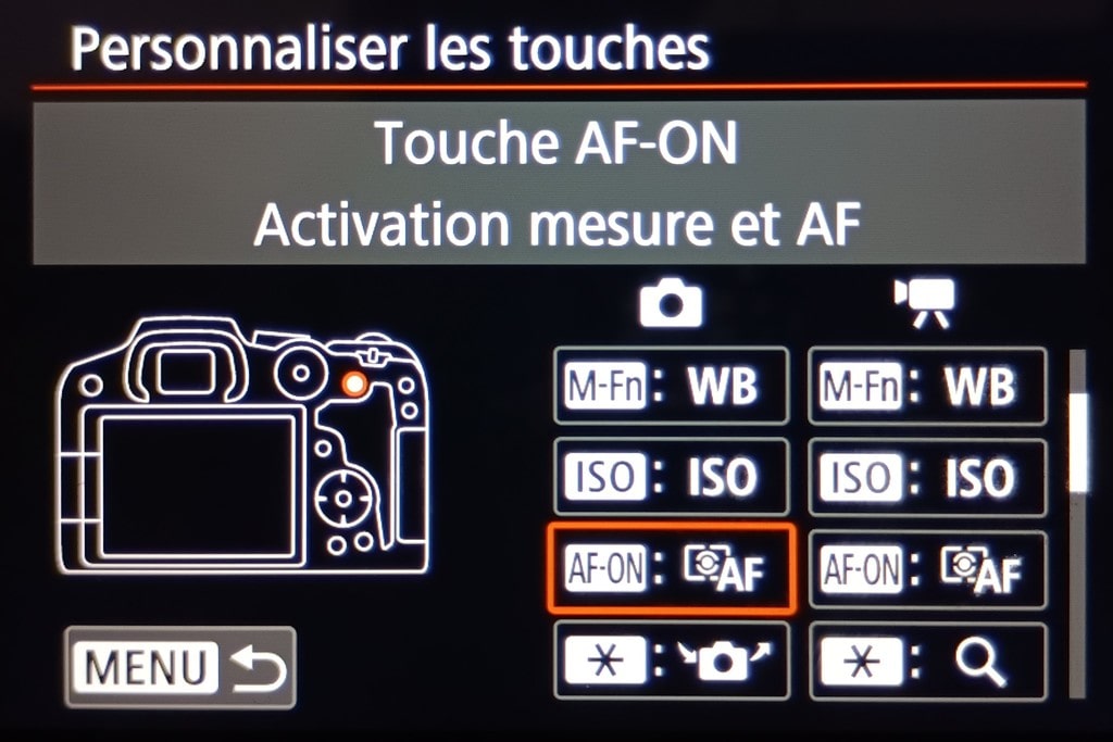 Le back button focus vous permet de séparer les deux fonctions, en assignant la fonction d’autofocus à un bouton à l’arrière du boitier, le bouton AF-ON, tandis que le déclencheur ne sert plus qu’à déclencher !