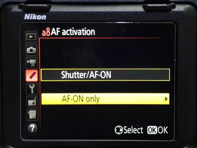 il vous faut changer la configuration du déclencheur. lui enlever la fonction d’autofocus pour la ré-assigner au bouton AF-ON